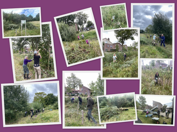 De groene vrijwilligersgroep van De Groene Knoop uit Deventer wilde de vrijwilligers van Het Landje van Niets gelukkig wel een keer helpen. Zij sloegen een grote slag bij het uitsteken daarvan.
