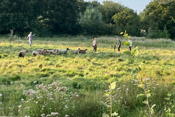 Naast inheemse bomen, struiken en planten, een poel en natuurlijke slootoevers levert een kleine kudde Maasduinenschapen een goede bijdrage aan de biodiversiteit door het gebied licht te begrazen.
