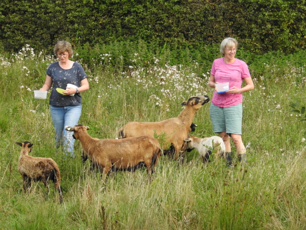 Het bijvullen van de waterbak van de schapen wordt ook gedaan door vrijwilligers. Iedereen kan intekenen voor een weekje water verzorgen, dat loopt goed.