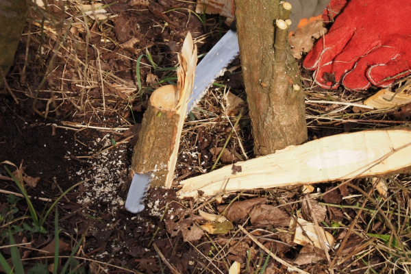 Kristianne legt uit: “Stammen van 4 cm of dikker worden onderaan schuin ingekapt zodat er een dusdanig dun stuk hout met bast overblijft dat buigzaam genoeg is om de struik of boom te laten ombuigen. Hierdoor blijft de struik van sapstroom voorzien en dus leven. Als dit met alle struiken op een rij gebeurt ontstaat een levend hekwerk. De hergroei groeit weer recht naar boven en vlecht zich door de liggende struiken heen. een mooie samenwerking tussen mens en de natuur”. Deze methode heet feitelijk heggenleggen.