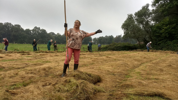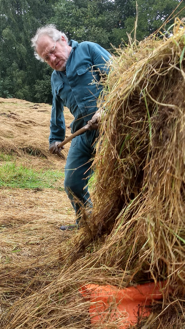 Vele droge, warme dagen gingen vooraf. Het hooi was lekker gaan drogen en toen . . . Toen meende Pluvius zich weer eens te moeten laten gelden. Met volle instemming werd de regen door onze tuin begroet, maar wij als hooiers waren iets minder amused. Het werd er een stuk (in)spannender door.