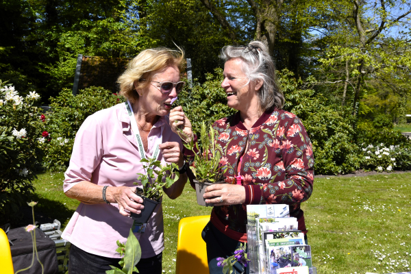 “Ik heb de helft van mijn tuin al in een bloementuin veranderd”, vertelt een bezoeker. “Ik word zo blij van al die bloemen en al die hommels die erop afkomen. Ook heb ik een bijenhotel opgehangen, echt superleuk.” Een andere bezoeker vertelt dat hij onlangs een woning heeft gekocht met voor het huis 1250 vierkante meter klinkers en erachter nog eens 1500 vierkante meter stoeptegels: “We hebben een nieuw terras gemaakt van een combinatie van die stoeptegels en klinkers. Verder hebben we nu één grote zandvlakte. Daar moet dus nog wel iets meer in dan deze twee plantjes, maar alle groene beetjes helpen. We hebben trouwens ook subsidie gekregen voor ons erfbeplantingsproject en voor het aanplanten van een boomsingel (red. een brede, aaneengesloten strook met opgaande begroeiing van bomen en struiken). Ik ben dus heel blij met de Gemeente.”