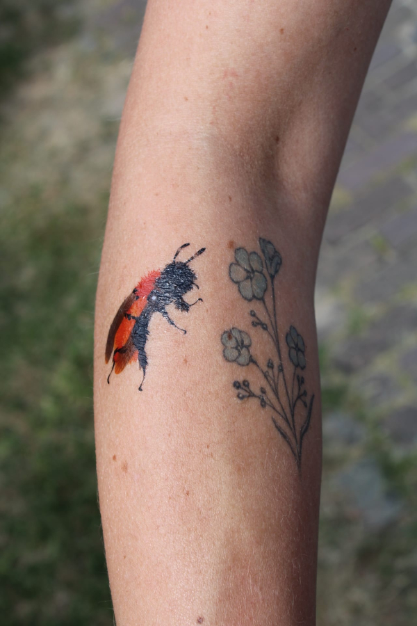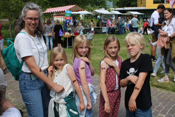 Op het Voorzomerfeest van de Nooterhof (Zwols centrum voor natuur en duurzaamheidseducatie) zijn we begonnen met de publiciteit voor de Waardplantenactie. Om de relatie tussen plant en bij duidelijk te maken mochten we een tattoo-bij op kinderarmen plakken, het tweede cadeautje...