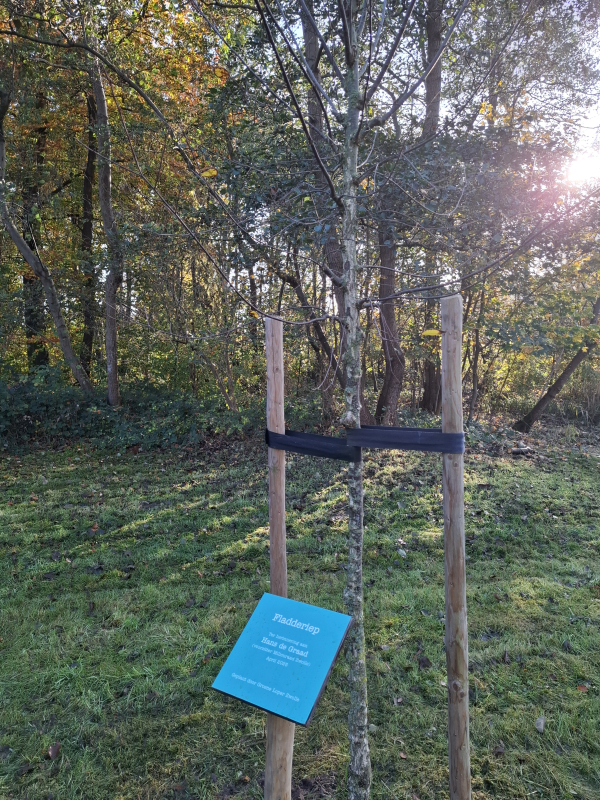 In dit jubileumjaar is er ook een extra boom geplant voor Hans de Graad, vrijwilliger van het Kernteam Groene Loper Zwolle van het eerste uur. Hij was ongeneeslijk ziek. In deze Fladderiep (het vierde cadeau) leeft hij voort in herinnering, ook na dit jubileumjaar.