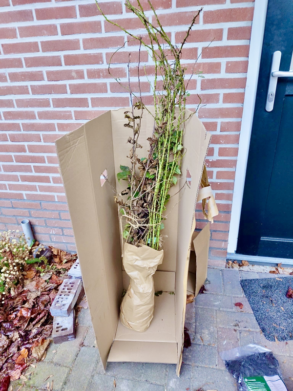 In november zette Monique weer een stap op weg naar haar groene tuin: ze plantte een Tuiny Haag. Dat is een kant-en-klaar pakket met inheemse haagplanten en een bodemverbeteraar. Je kunt zo’n pakket bestellen bij onder andere IVN en Sprinklr. Met dit pakket kun je een haag aanleggen van zo'n twee meter lang en vijftig tot honderd centimeter breed. Het pakket dat Monique bestelde bestaat uit meidoorn, haagbeuk, Gelderse roos, gele kornoelje en egelantier. Je plant die struiken dicht bij elkaar, waardoor de haag extra snel groeit. Zo heb je binnen twee jaar een wilde haag in je tuin. Hierin kunnen vogels, egels en insecten eten en bescherming vinden.