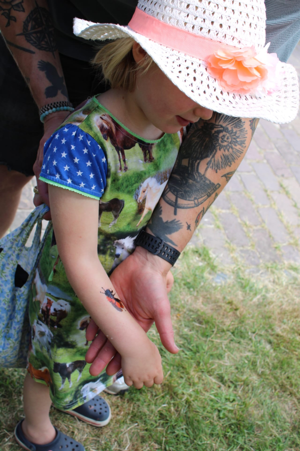 Op het Voorzomerfeest van de Nooterhof (Zwols centrum voor natuur en duurzaamheidseducatie) zijn we begonnen met de publiciteit voor de Waardplantenactie. Om de relatie tussen plant en bij duidelijk te maken mochten we een tattoo-bij op kinderarmen plakken, het tweede cadeautje...